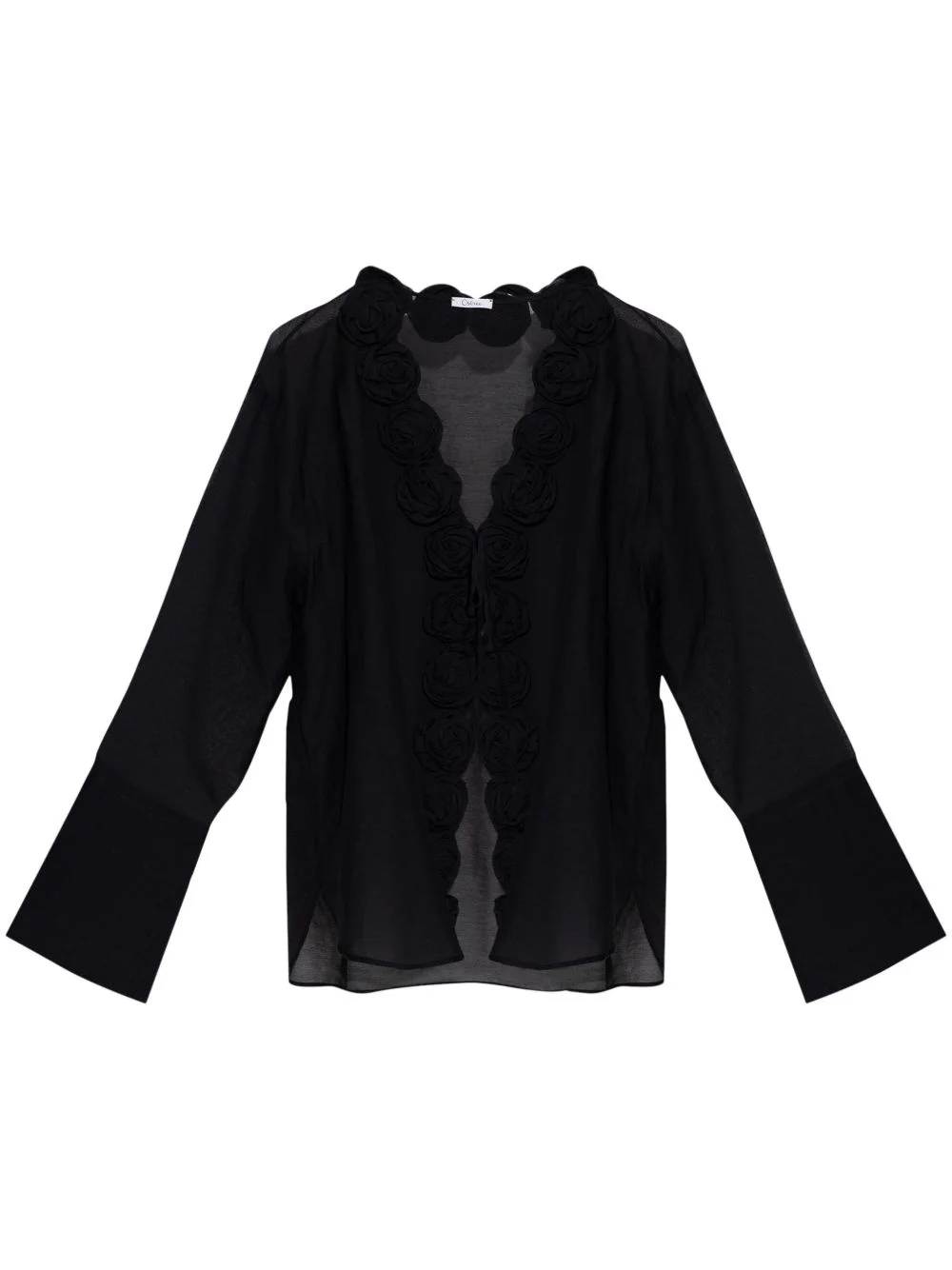 beach shirt Highlights - Black - Front tie fastening - Long sleeves - Floral applique Made in Italy Composition Cotton 70%, Silk 30% Washing instructions Read Manufacturer Guidelines