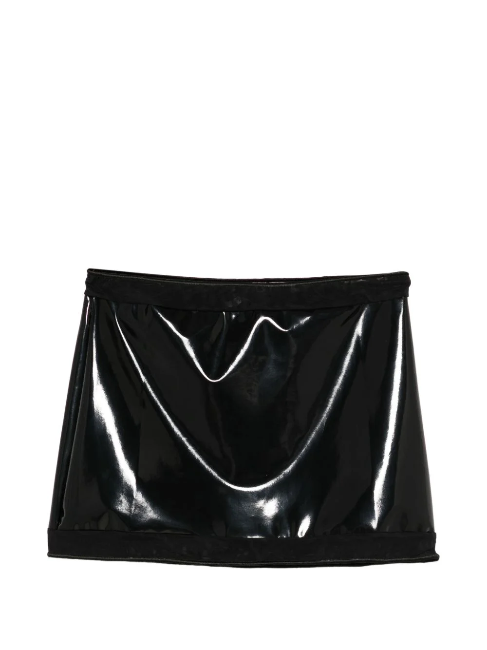 black mini skirt Highlights - Black - Elasticated waist - Mini length Made in Italy Composition Outer: Polyurethane 100%, Polyamide 90%, Elastane 10% Lining: Polyamide 82%, Elastane 18% Washing instructions Hand Wash
