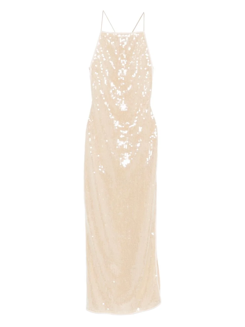 Marylin sequin-embellished dress Highlights - Beige - Sequin embellishment - Spaghetti straps - Straight neck - Maxi length - Side slit Made in Italy Composition Outer: Polyester 100% Lining: Polyamide 80%, Elastane 20% Washing instructions Read Manufacturer Guidelines