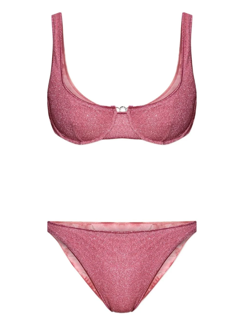 glitter underwire bikini Highlights - Pink - Glitter finish - Scooped neckline - Underwire bra - Rear clasp fastening - High-cut bottoms - Be mindful to try on swimwear over your own garments. Made in Italy Composition Polyamide 64%, Metallised Fibres 36% Washing instructions Read Manufacturer Guidelines