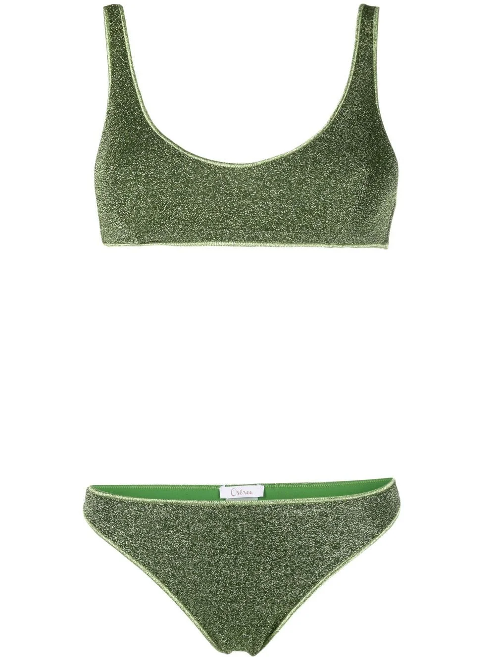 glittered scoop-neck bikini set bright green Top: glitter detailing scoop neck sleeveless stretch-design Bottoms: glitter detailing stretch-design Be mindful to try on swimwear over your own garments. Made in Italy Composition Lining: Polyamide 85%, Spandex/Elastane 15% Outer: Polyamide 64%, Metallic Fibre 36% Washing instructions Machine Wash