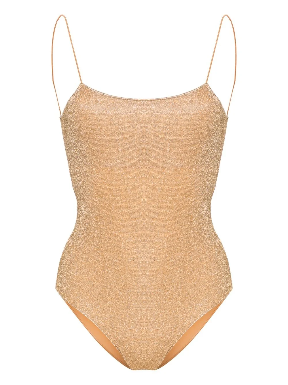 HS23 Lumiere swimsuit Highlights - Gold-tone - Stretch-design - Lurex detailing - Square neck - Spaghetti straps - Scoop back - High cut - Full lining - Be mindful to try on swimwear over your own garments. Made in Italy Composition Outer: Polyamide 64%, Metallic Fibre 36% Lining: Polyamide 85%, Elastane 15% Washing instructions Machine Wash