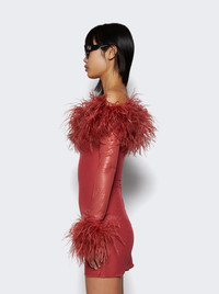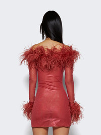 Details - Fitted silhouette - Short length - Off the shoulder - Long sleeves - Feathers on neckline and cuffs - Sheer design - Care according to label - Material: 82% Polyamide, 18% Elastane - Model is 5'9"/175cm and is wearing a size S Brand Style: MDS250 Designer/Brand: OSeREE