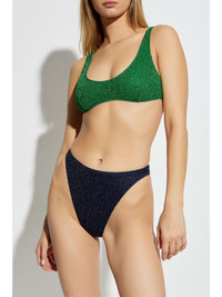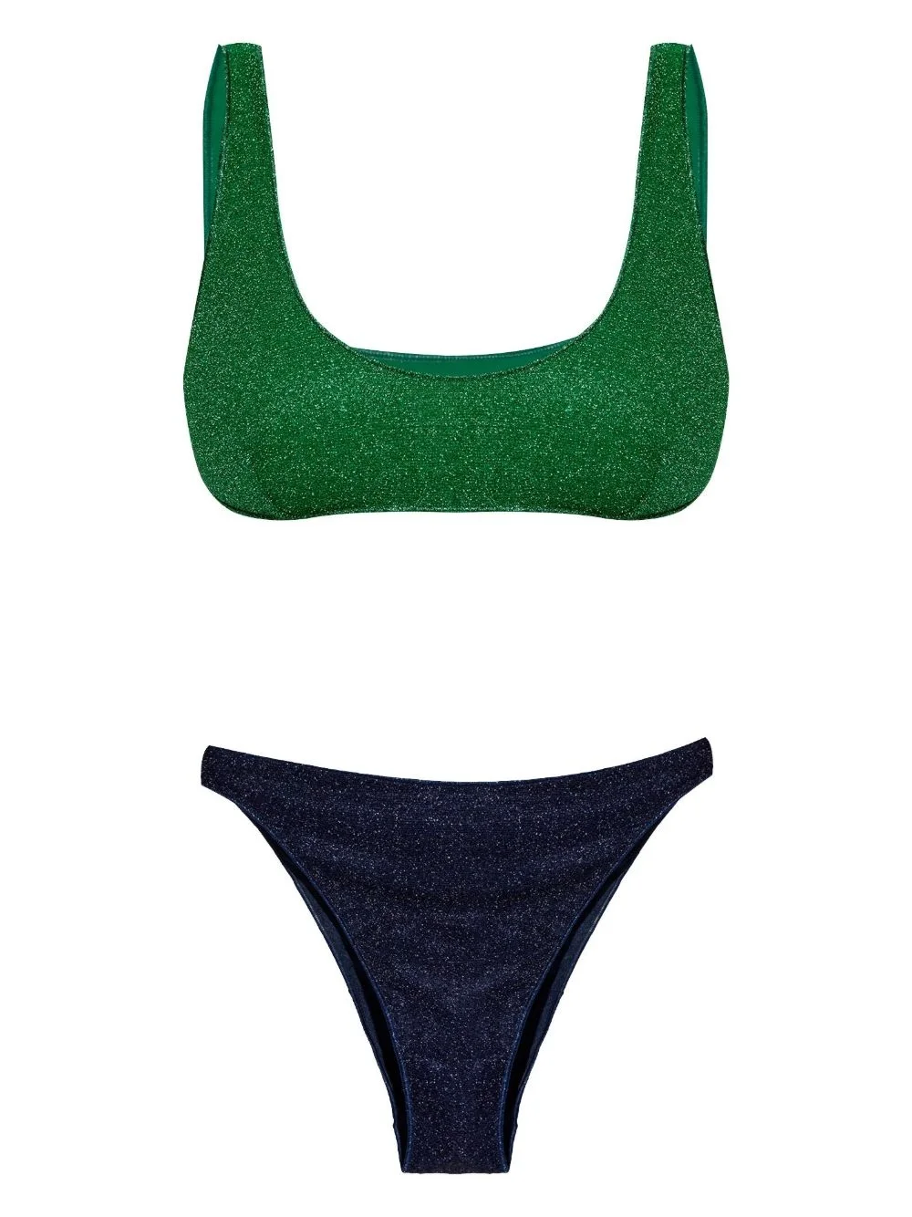 lurex bikini Highlights - Emerald green/midnight blue - Scoop neck - Sleeveless - High waist - High cut - Be mindful to try on swimwear over your own garments. Made in Italy Composition Polyamide 64%, Fabric 36%