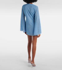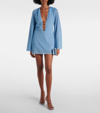 Cut to a mini length, this beach dress features a plunging neckline with O-ring detail. This piece is made with Oseree’s Lumiere fabric, which is threaded with very fine metallic strands to achieve a unique shimmering finish. Product Details - Material: 64% polyamide, 36% metallic fibres - Care instructions: machine wash at 30 degrees - Made in Italy - Designer color name: Crystal - Item color: blue - Lining: 82% polyamide, 18% elastane - Hardware color: gold - Collar: V-neck - Fully lined - Item number: P01078641 Size & Fit - True to size - Cinched waist - Stretchy fabric - The model seen in the picture is 178cm-5'10" and wearing a size S