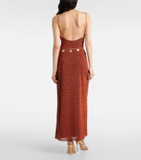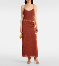 This maxi dress is made with Oseree’s Lumiere fabric, which is threaded with very fine metallic strands to achieve a unique shimmering finish. It features a chain belt adorned with dangling shell charms. Product Details - Material: 64% polyamide, 36% metallic fibres - Care instructions: machine wash at 30 degrees - Made in Italy - Designer color name: Brown - Item color: brown - Lining: 82% polyamide, 18% elastane - Item number: P01042166 Size & Fit - True to size - Low back - Fitted - Stretchy fabric - The model seen in the picture is 178cm-5'10" and wearing a size XS