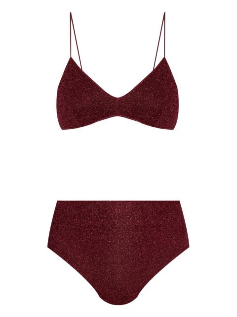 Lumiere bikini Highlights - Burgundy - Adjustable spaghetti straps - Soft triangle bralette - High-waisted bottom - Lurex detailing - Be mindful to try on swimwear over your own garments. Made in Italy Composition Lurex 100%, Polyamide 100% Washing instructions Read Manufacturer Guidelines