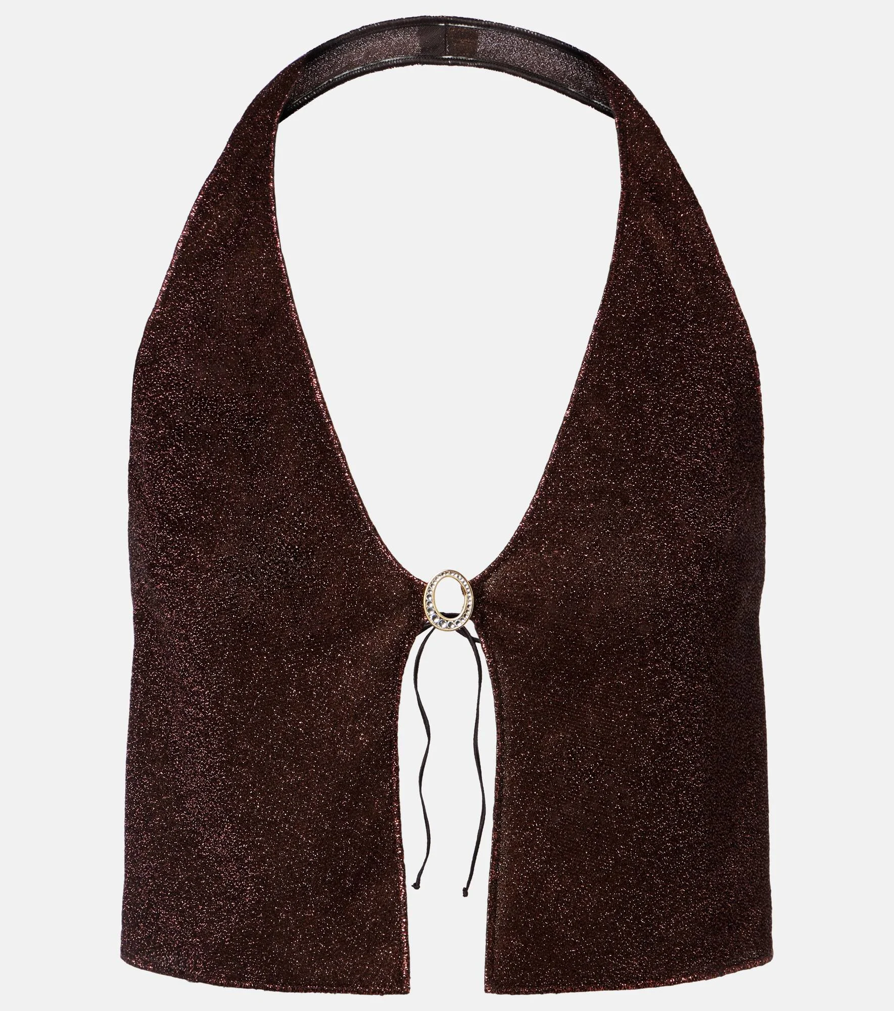 When the occasion calls for unforgettable stop-and-stare silhouettes, Oseree is the answer. Complete with a halter neckline, this crop top is made with the brand's signature Lumiere fabric, threaded with fine metallic strands to achieve a unique shimmering finish. Product Details - Material: 64% polyamide, 36% metallic fibres - Care instructions: hand wash - Made in Italy - Color: brown - Designer color name: Chocolate - Item color: brown - Lining: 80% polyamide, 20% elastane - Closure: self-ties - Includes: dust bag - Item number: P01139497 Size & Fit - Fits small to size - we recommend trying one size larger - Padded top - Medium-cut leg - The model seen in the picture is 178cm-5'10", cup size B, and wearing a size S