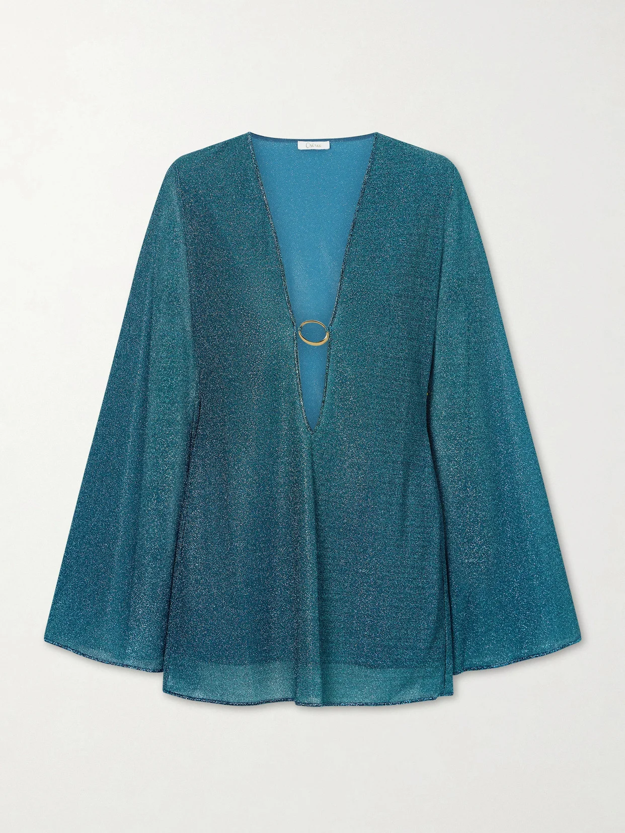 Just like the swimwear from Oseree's 'Lumiere' collection, this kaftan is made from metallic stretch-knit that only looks more glamorous in the light. It has a slim silhouette with a plunging neckline that's punctuated by a signature gold-tone ring. The oversized bell sleeves add dimension and movement.