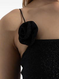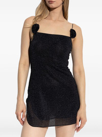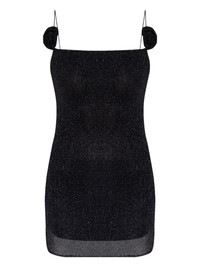 sparkling mini dress Highlights - Black - Sparkle effect - Spaghetti straps - Floral embellishment - Fitted design - Full lining Made in Italy Composition Polyamide 64%, Lurex 36% Washing instructions Read Manufacturer Guidelines