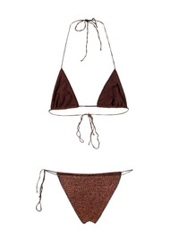 Lumiere glittered bikini set chestnut-brown glitter detailing Top: triangle cup halterneck tie fastening rear tie fastening Bottom: triangle shape low-rise side tie fastening Be mindful to try on swimwear over your own garments. Made in Italy Composition Lining: Polyamide 85%, Elastane 15% Outer: Polyester 100% Washing instructions Hand Wash