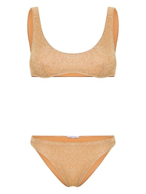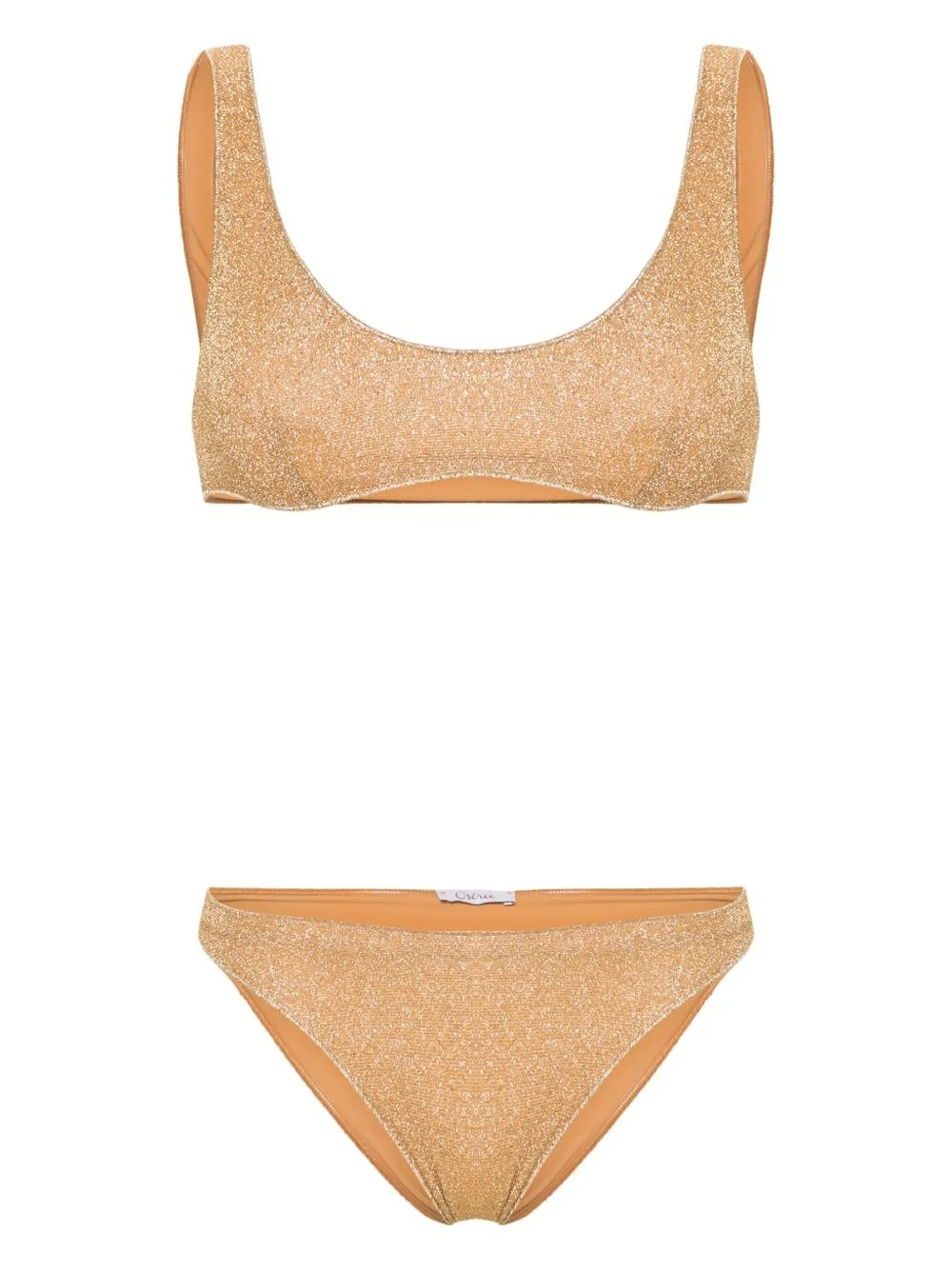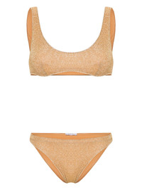 Lumiere Sporty lurex bikini Highlights - Gold-tone - Metallic threading - Stretch-design - Lurex detailing - Top: - Scoop neck - Thin shoulder straps - Bottoms: - High-waisted - Full lining - Slip-on style - Be mindful to try on swimwear over your own garments. Made in Italy Composition Outer: Polyamide 64%, Metallic Fibre 36% Lining: Polyamide 85%, Elastane 15% Washing instructions Machine Wash
