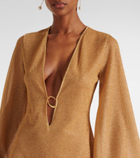 Product Details - Material: 64% polyamide, 36% metallic fibres - Care instructions: machine wash at 30 degrees - Made in Italy - Designer color name: Gold - Lining: 92% polyamide, 8% elastane - Collar: V-neck - Item number: P00946078 Size & Fit - True to size - Cinched waist - Stretchy fabric - The model seen in the picture is 178cm-5'10" and wearing a size XS
