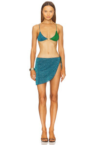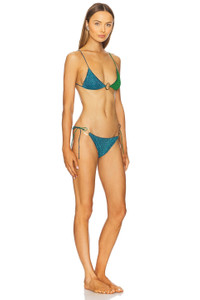 - Self: 64% polyamide 36% metallic fibers Lining: 80% polyamide 20% elastane - Made in Italy - Machine wash cold - Unpadded cups - Halter and back self-tie closures Side self-tie closures - Gold-tone metal accent at center - Glittery jersey swimwear fabric - Sold as a set - Revolve Style No. OSSE-WX140 - Manufacturer Style No. LGF246