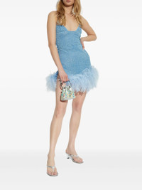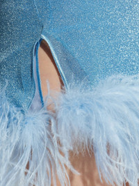 light blue lurex embellishment V-neck spaghetti straps feather trim at hem - Color: BLUE - Made in: Italy - Designer Style ID: LDF257 LUMIERE CRYST Composition and care Lurex: 100.0%, Polyamide: 100.0%, Ostrich Feather : 100.0%