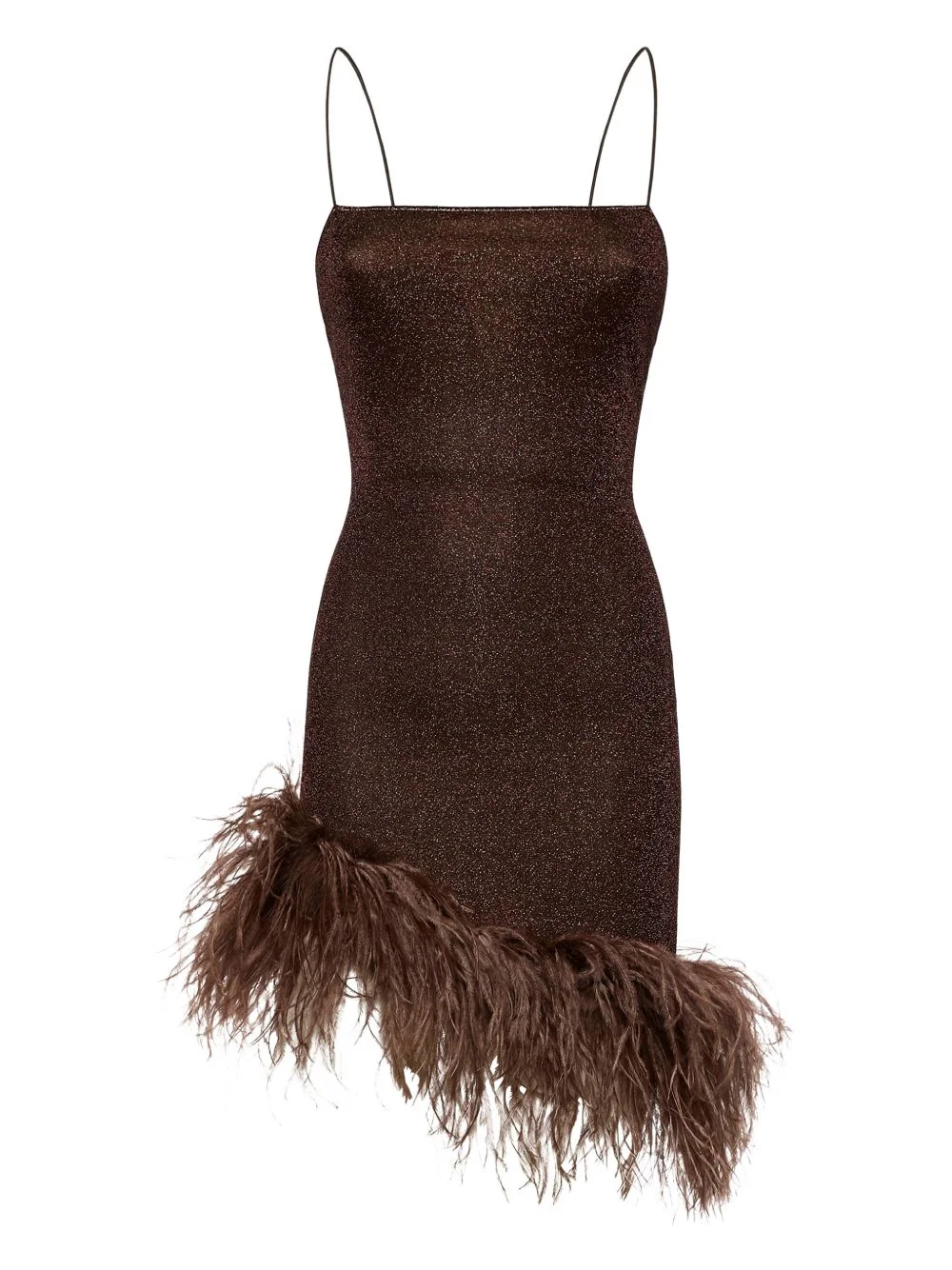 Lumiere Plumage mini dress Highlights - Brown - Feather trim - Asymmetric hem - Spaghetti straps - Square neck - Mini length Imported Composition Fabric 100%, Feather 100% Washing instructions Read Manufacturer Guidelines