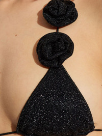 Lumiere Rose bikini Highlights - Black - Lurex detailing - Floral appliques - Adjustable ties - Triangle top - Tie-side bottoms - Be mindful to try on swimwear over your own garments. Made in Italy Composition Glitter 100%, Polyamide 64%, Lurex 36% Washing instructions Read Manufacturer Guidelines