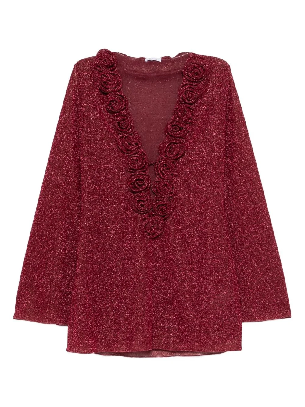 Lumiere Rose mini dress Highlights - Burgundy - Self-tie fastening - V-neck - Long sleeves - Floral applique Made in Italy Composition Lining: Polyamide 82%, Elastane 18% Outer: Polyamide 64%, Metallic Fibre 36% SIZE & FIT Model measurements Height 5 ft 9 in(1.75 m) Bust/Chest 32.67 in(83 cm) Hips 36.22 in(92 cm) Waist 24.8 in(63 cm) FittingInformation Designed for a slim fit that sits just away from the body offering a close yet comfortable fit Made from a lightweight fabric Washing instructions Machine Wash