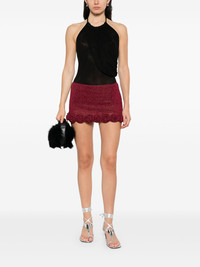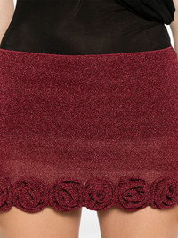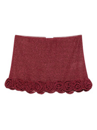 Lumiere Rose mini skirt Highlights - Burgundy - Elasticated waistband - Floral applique Made in Italy Composition Lining: Polyamide 82%, Elastane 18% Outer: Polyamide 64%, Metallic Fibre 36% SIZE & FIT Model measurements Height 5 ft 9 in(1.75 m) Bust/Chest 32.67 in(83 cm) Hips 36.22 in(92 cm) Waist 24.8 in(63 cm) FittingInformation This mini-length skirt is intended to be worn low on the hips Made from a lightweight fabric Washing instructions Machine Wash