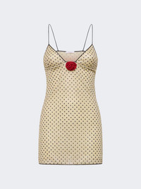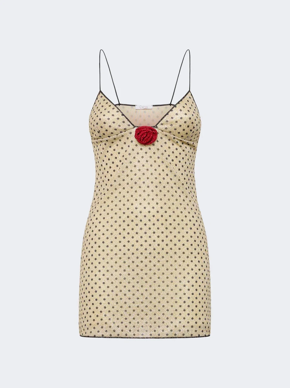 Details - Mini length - Thin straps - V neck - Rose applique - Polka dot motif - Care according to label - Material: 64% Polyamide, 36% Metallic Vendor Color Code: Brand Style: PDS261 Designer/Brand: OSeREE