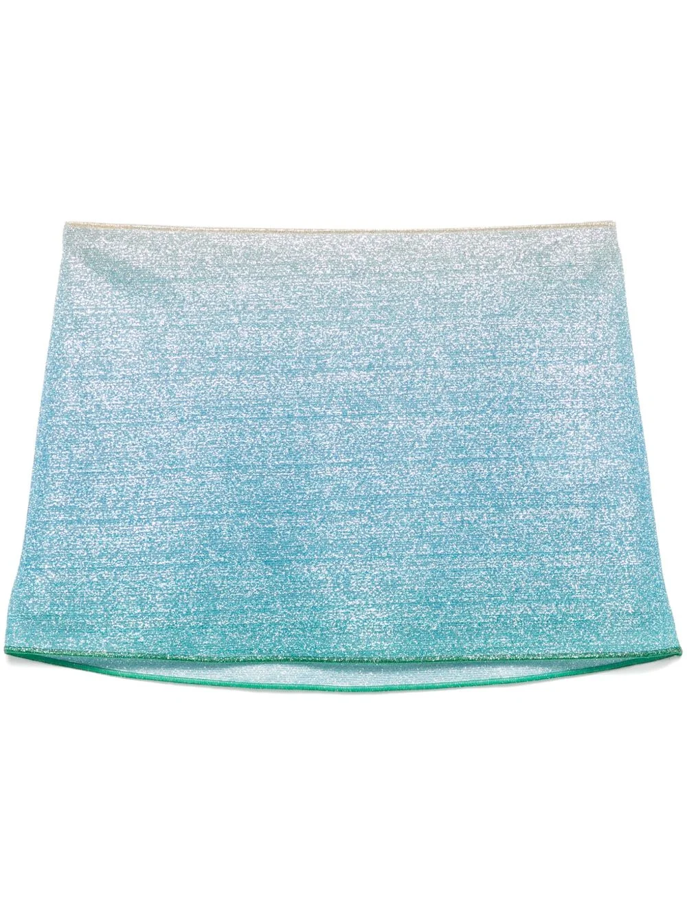 lurex mini skirt Highlights - Sky blue Made in Italy Composition Lining: Polyamide 82%, Elastane 18% Outer: Polyamide 64%, Metallised Fibres 36% SIZE & FIT Model measurements Height 5 ft 11 in(1.8 m) Bust/Chest 31.49 in(80 cm) Hips 36.61 in(93 cm) Waist 24.4 in(62 cm) FittingInformation This mini-length skirt is intended to be worn low on the hips Slightly short in length; consider your own measurements Made from a midweight fabric Washing instructions Hand Wash