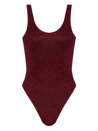 Lumiere swimsuit Highlights - Burgundy - Scoop neckline - High legs - Sleeveless design - Lurex detailing - Be mindful to try on swimwear over your own garments. Made in Italy Composition Lurex 100%, Polyamide 100%