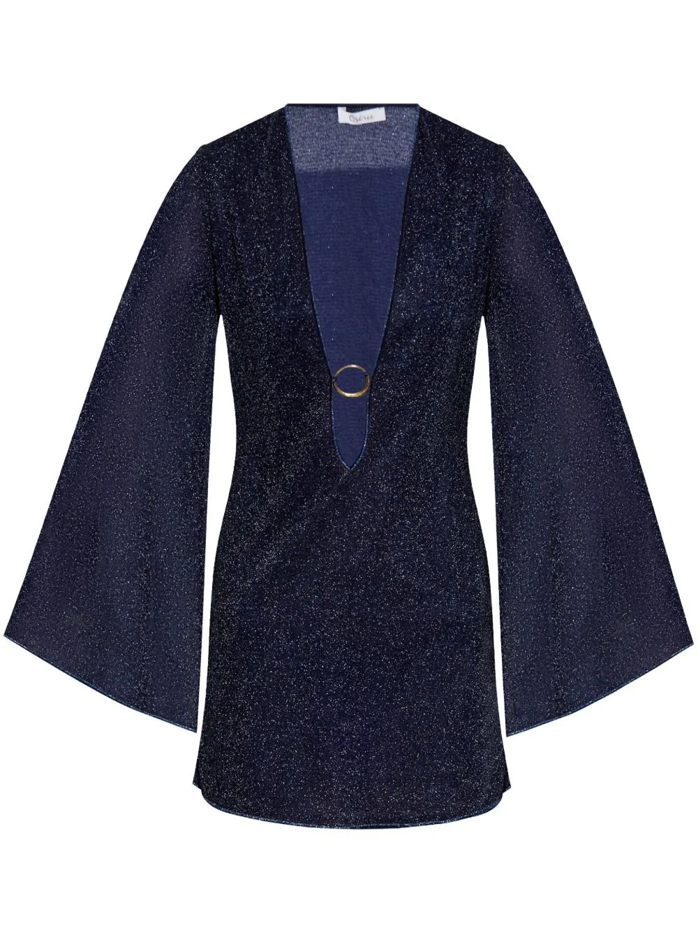 lurex mini dress Highlights - Midnight blue - Lurex detailing - O ring logo plaque - Plunging v-neck - Long sleeves - Flared cuffs - Finished edge - Thigh-length Made in Italy Composition Polyamide 64%, Fabric 36% SIZE & FIT FittingInformation Designed for a slim fit that sits just away from the body offering a close yet comfortable fit Made from a lightweight stretch fabric, this piece offers elasticity and flexibility when worn Washing instructions Read Manufacturer Guidelines