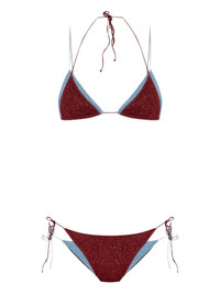 burgundy glitter detailing triangle shape adjustable ties contrasting blue trim side ties on the bottoms Be mindful to try on swimwear over your own garments. - Color: RED - Made in: Italy - Designer Style ID: LTS250 LUMIERE CRYST Composition and care Lurex: 36.0%, Polyamide: 64.0%