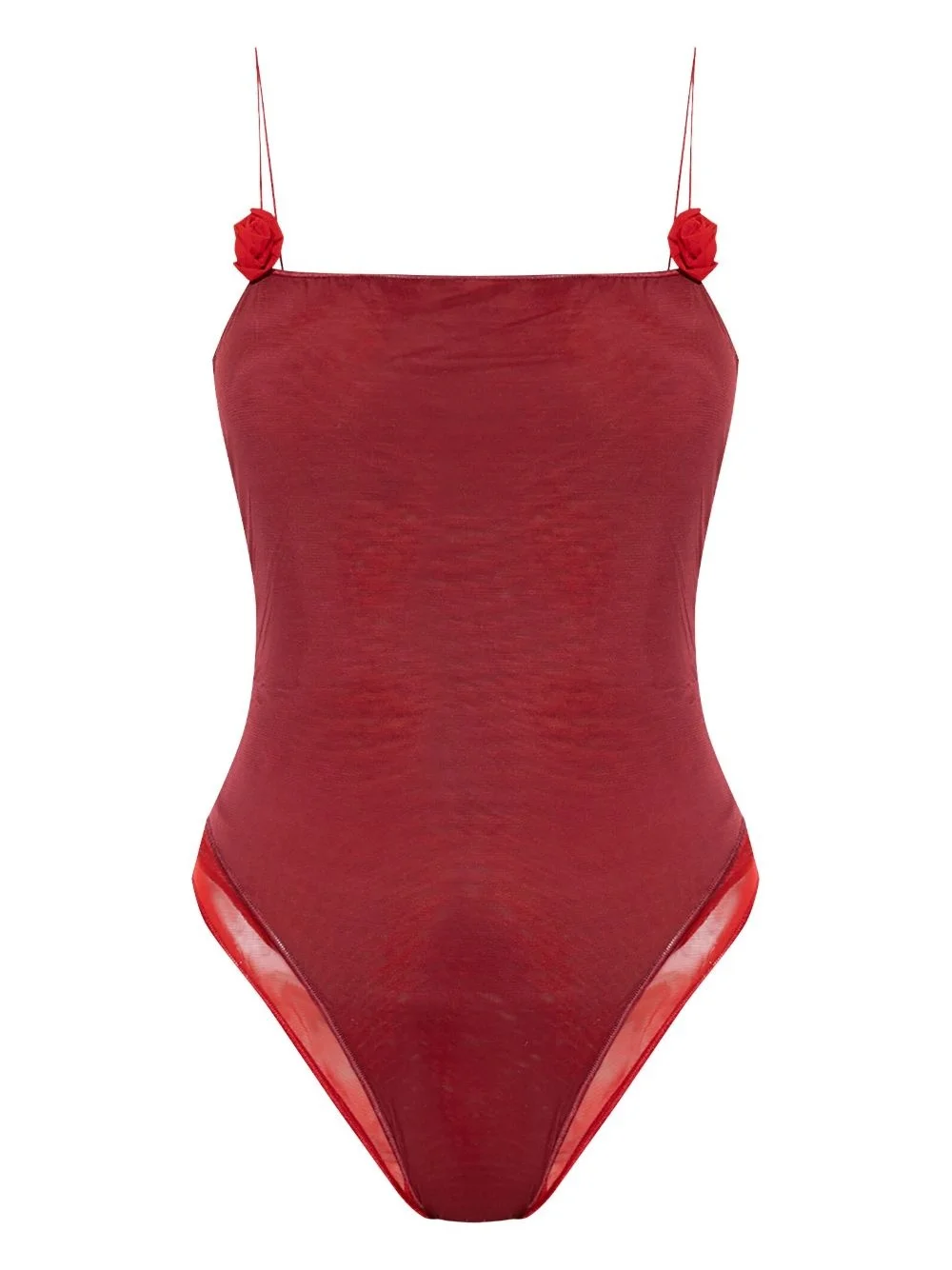 Lumiere Rose applique swimsuit Highlights - Dark red - Lurex detailing - One-piece design - Rose applique - Square neck - Spaghetti straps - Scoop back - Mesh lining - Be mindful to try on swimwear over your own garments. Made in Italy Composition Polyamide 82%, Elastane 18%