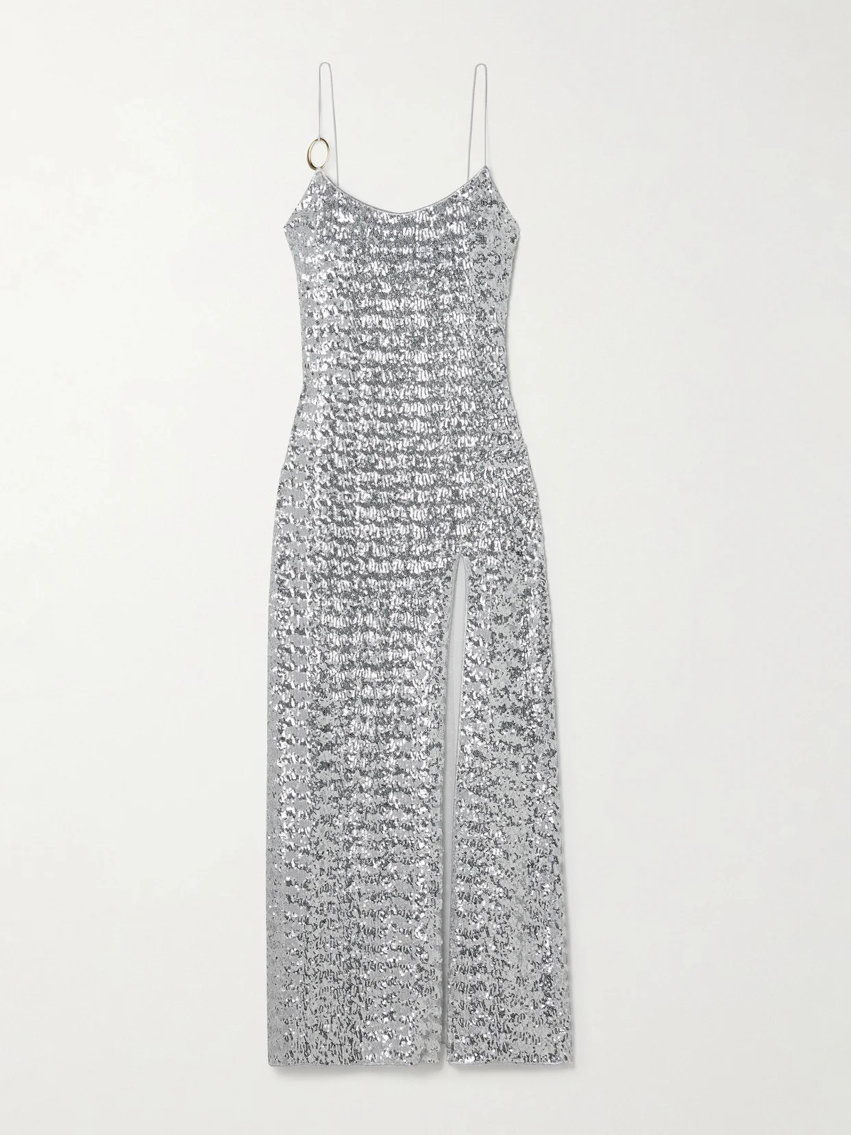 Oseree's maxi dress is embellished with silver sequins that glisten beautifully from all angles. Cut from stretch-mesh, it's accented with a contrasting gold-tone ring and has a thigh-high split and full lining.