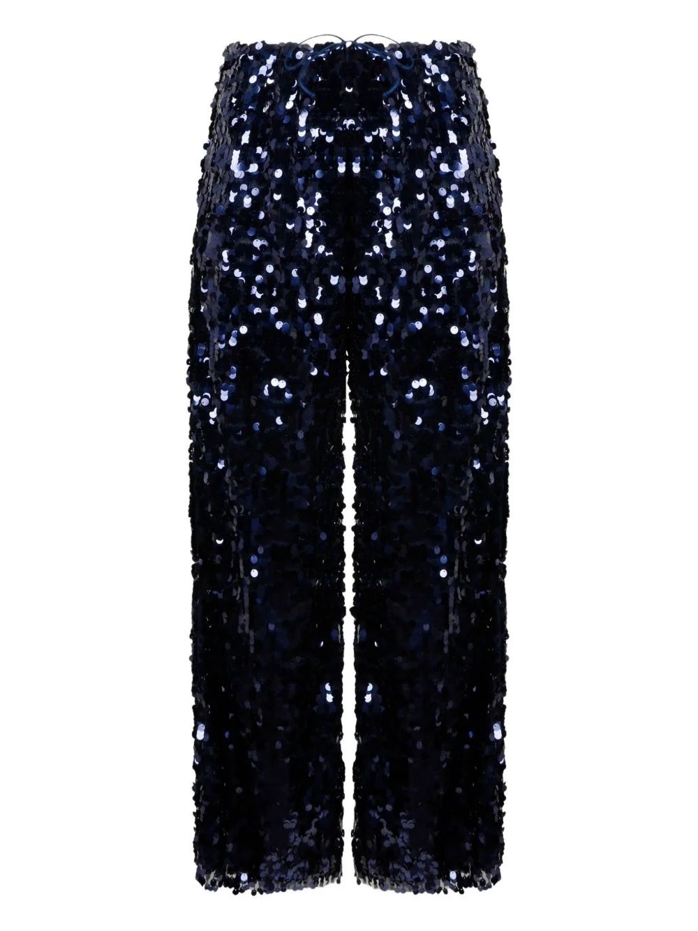 sequin trousers Highlights - Navy blue - Elasticated drawstring waistband - Straight leg Made in Italy Composition Polyester 100% Washing instructions Read Manufacturer Guidelines