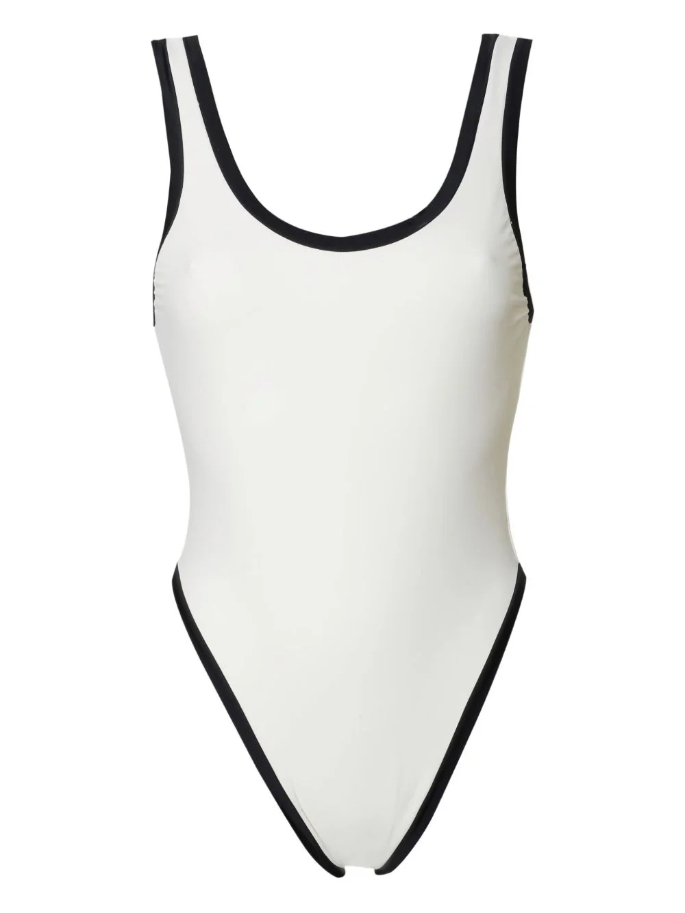 Sporty swimsuit Highlights - White/black - Scoop neckline - Sleeveless - High-leg cut - Low back - Be mindful to try on swimwear over your own garments. Imported Composition Elastane 50%, Polyamide 50% Washing instructions Read Manufacturer Guidelines