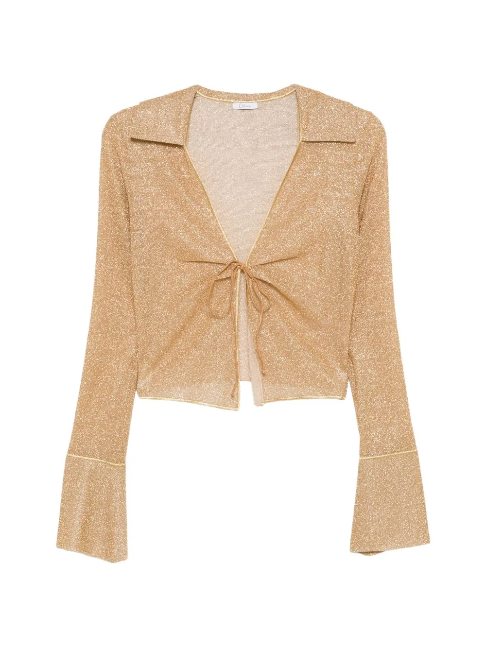 tie front flare sleeve top Highlights - Brown - Tie fastening - Collared - Long sleeves - Flare cuffs - Sheer finish Made in Italy Composition Polyamide 64%, Metallic Fibre 36% Washing instructions Hand Wash