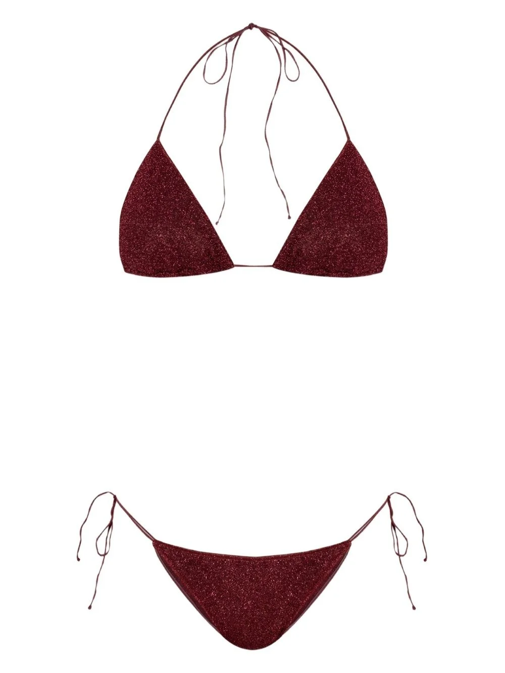 Lumiere bikini Highlights - Burgundy - Adjustable ties at neck and sides - Lurex detailing - Be mindful to try on swimwear over your own garments. Made in Italy Composition Polyamide 64%, Lurex 36%
