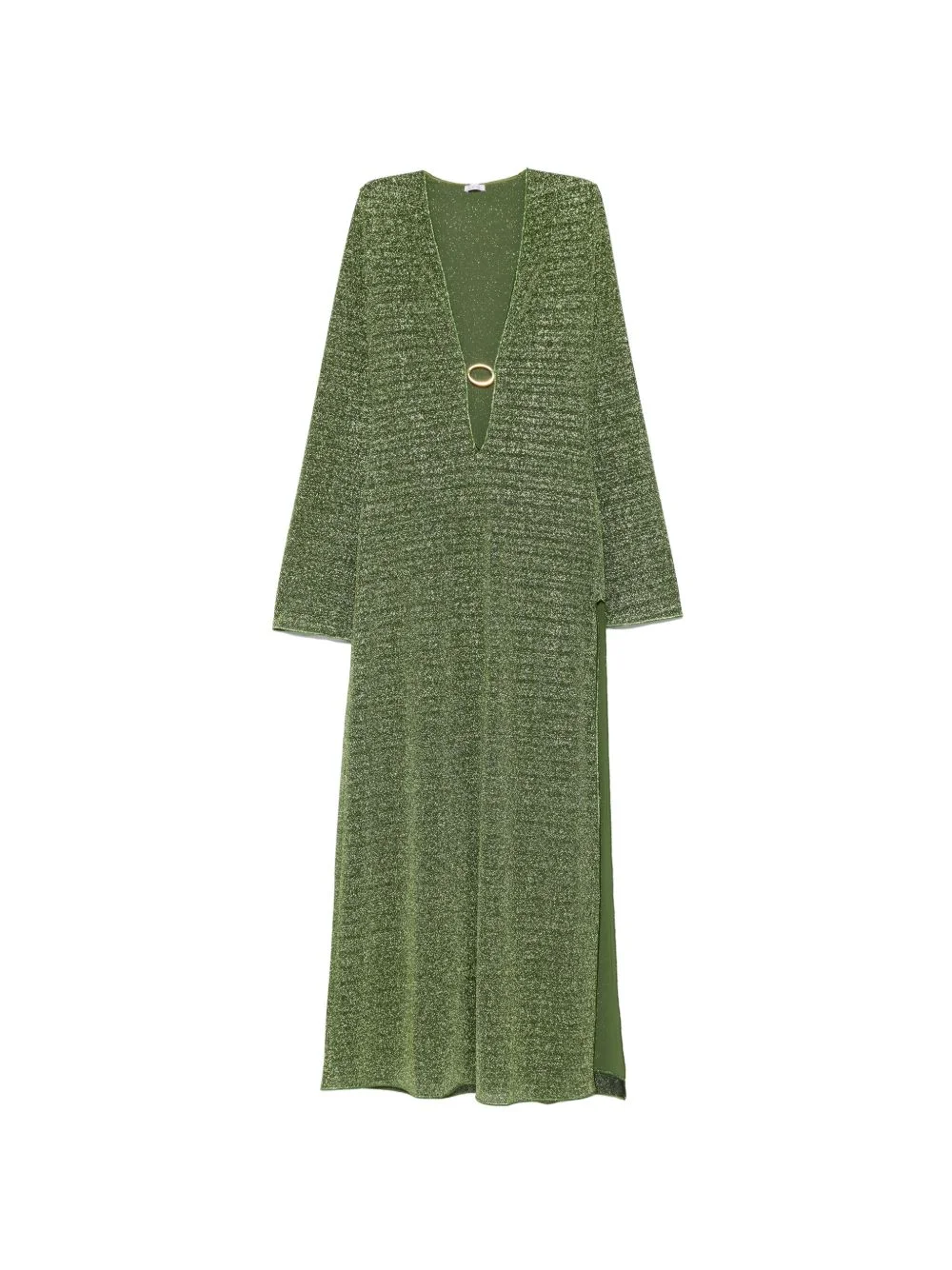 V-neck ring maxi dress Highlights - Green - V-neck - Ring detail - Side slit Made in Italy Composition Outer: Polyamide 64%, Metallised Fibres 36% Lining: Polyamide 80%, Elastane 20% Washing instructions Hand Wash
