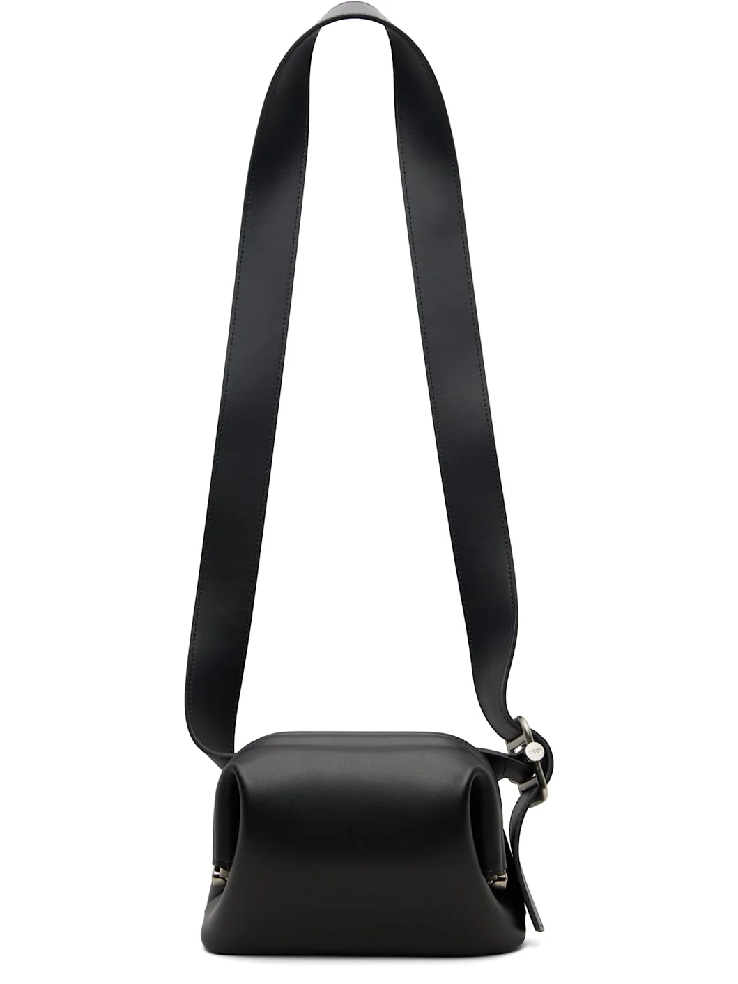 Buffed leather shoulder bag. · Adjustable crossbody strap · Logo stamp at back face · Hinged closure · Patch pocket at interior · Cotton canvas lining · Logo-engraved antiqued silver-tone hardware · H5.5" x W7.5" x D3.75" Supplier color: Black Body: 100% leather. Lining: 100% cotton. Made in South Korea 261811F048042
