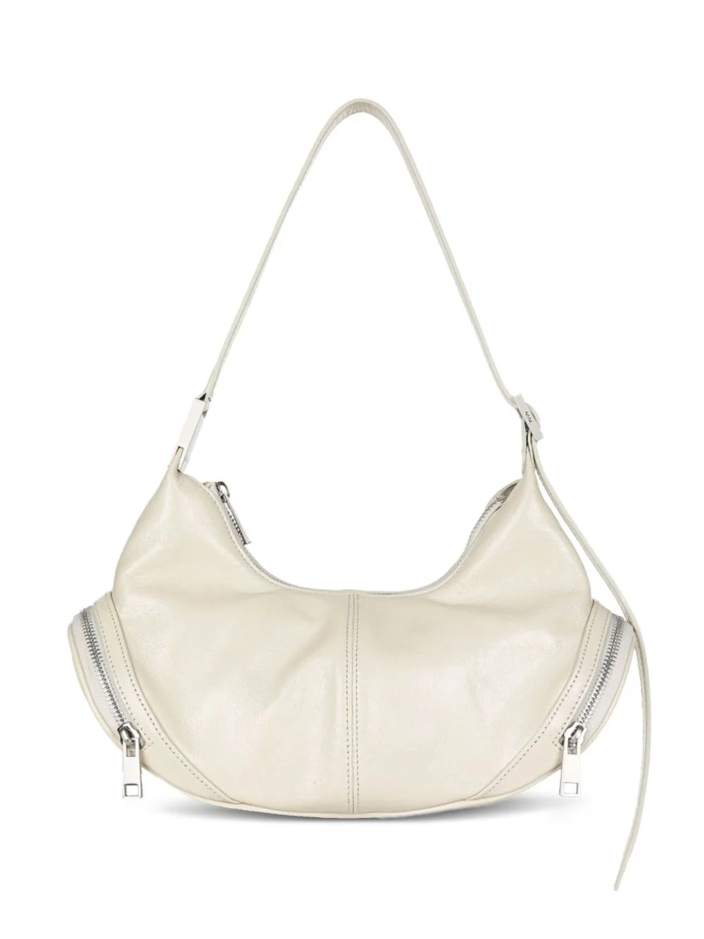 Cargo shoulder bag Highlights - White - Top zip fastening - Adjustable shoulder strap - Two side zip-fastening pockets - This piece comes complete with a protective dust bag. Imported Composition Outer: Calf Leather 100% Lining: Polyester 85%, Polyurethane 15% SIZE & FIT Measurement DEPTH 3.93 in(10 cm) HEIGHT 7.08 in(18 cm) WIDTH 12.2 in(31 cm)