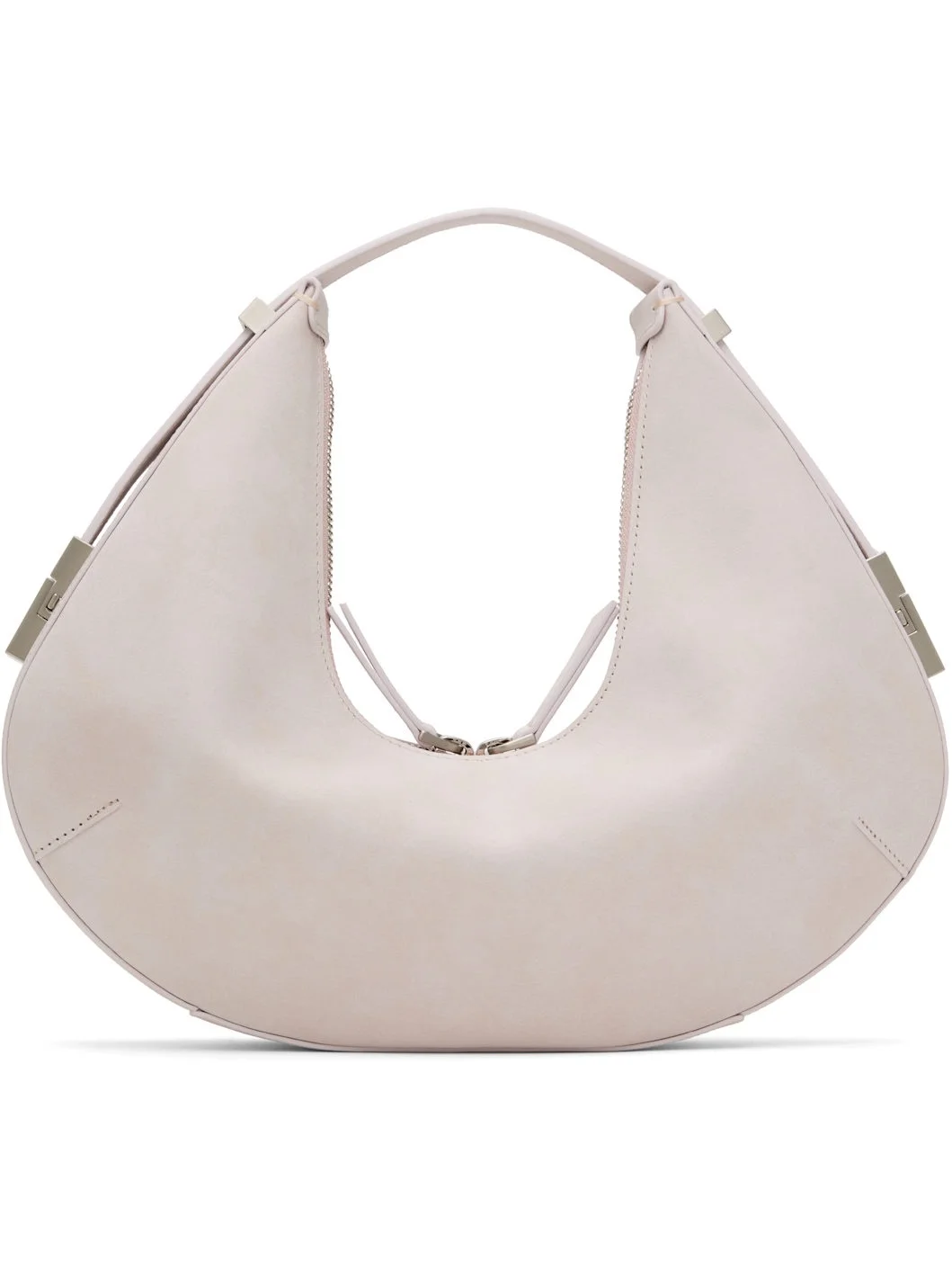Suede top handle bag in pink. · Adjustable sliding carry handle · Logo embossed at back face · Two-way zip closure · Patch pocket at interior · Microfiber lining · Logo-engraved silver-tone hardware · H4.5" x W11" x D2.25" Supplier color: Marena dusty pink Body: 100% leather. Lining: 85% polyester, 15% polyurethane. Made in South Korea 251811F048006