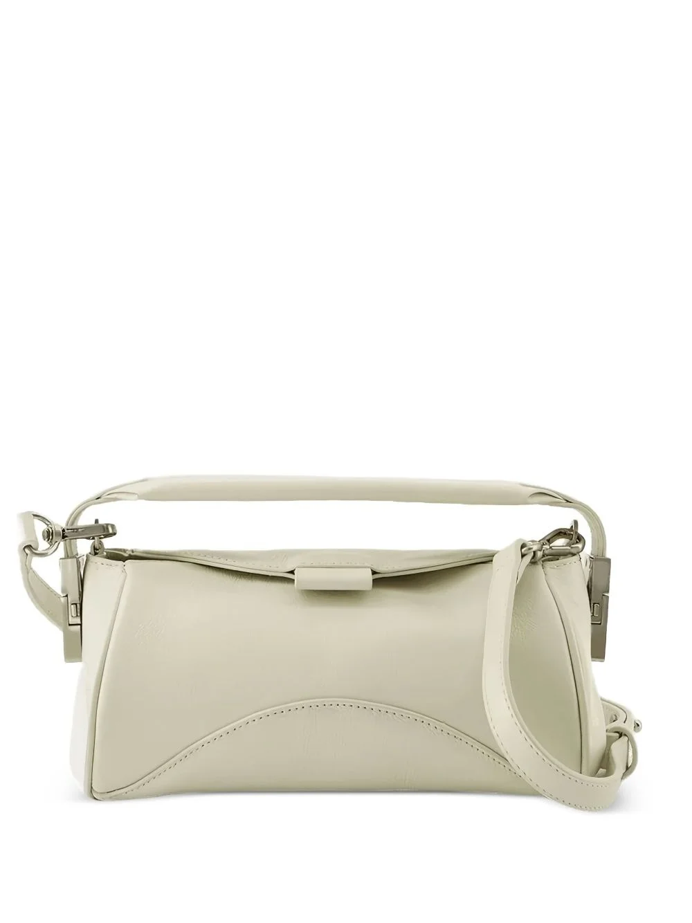 structured shoulder bag Highlights - Cream beige - Top handle - Detachable shoulder strap - Magnetic snap fastening - Curved panel detailing - Main compartment Imported Composition Outer: Calf Leather 100%, Polyester 85%, Polyurethane 15% SIZE & FIT Measurement DEPTH 4.52 in(11.5 cm) HEIGHT 4.52 in(11.5 cm) WIDTH 7.87 in(20 cm)