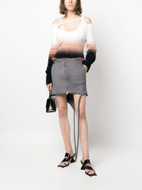 asymmetric-hem zip-up miniskirt Highlights - Slate grey/pumpkin orange - Stretch-jersey - Deconstructed design - Faux-fur trim - Belted waist tabs - Off-centre front fastening - Front zip fastening - Side zip-fastening pocket - Asymmetric edge Imported Composition Polyester 90%, Spandex/Elastane 10% SIZE & FIT Model measurements Height 5 ft 10 in(1.79 m) Bust/Chest 32.67 in(83 cm) Hips 34.25 in(87 cm) Waist 24.4 in(62 cm) FittingInformation Designed with an asymmetric hem, this skirt is intended to be worn just below the waist Made from a midweight stretch fabric, this piece offers elasticity and flexibility when worn This piece fits true to size – take your usual size