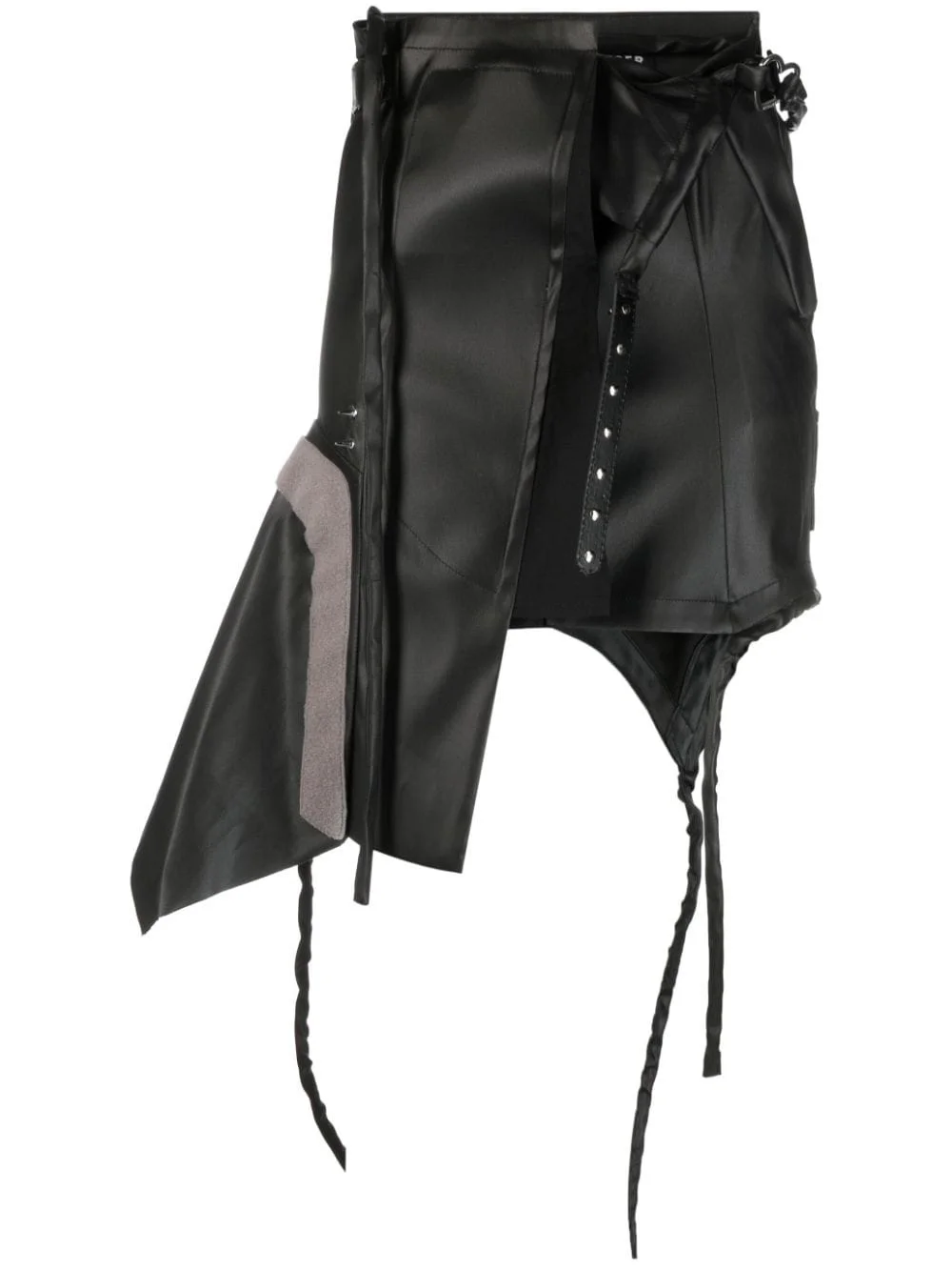 Biker asymmetric skirt Highlights - Black - Recycled polyester blend - Panelled design - Deconstructed design - Wrap design - Side touch-strap fastening - Asymmetric hem Imported Composition Recycled Polyester 97%, Elastane 3% SIZE & FIT Model measurements Height 5 ft 9 in(1.76 m) Bust/Chest 33.07 in(84 cm) Hips 34.64 in(88 cm) Waist 25.59 in(65 cm) Washing instructions Dry Clean Only