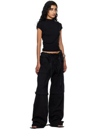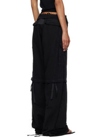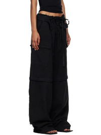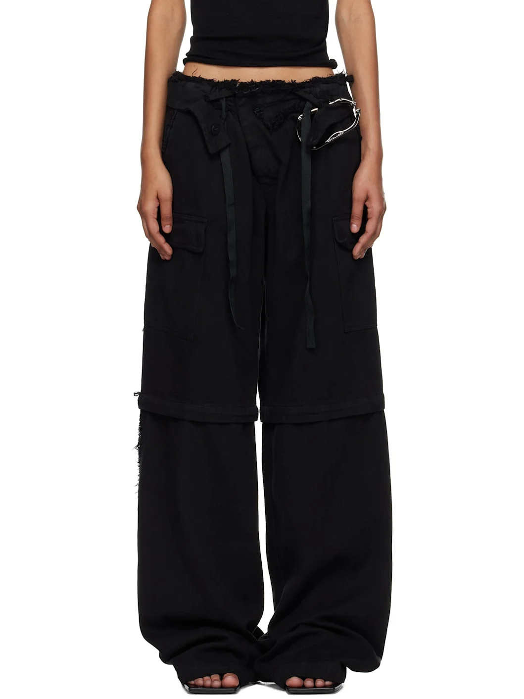 Cotton twill cargo pants. · Frayed edge, button strap, and drawstring at waistband · Four-pocket styling · Offset zip fly · Logo-engraved hardware at front · Drawstring at cuffs · Cargo pocket at outseams · Logo flag at outseam · Rubberized logo patch at back Supplier color: Black wash 100% cotton. Made in Greece 252016F087002