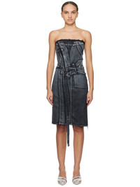 Handcrafted stretch cotton- and recycled polyester-blend denim dress. Graphic pattern printed throughout. · Off-the-shoulder construction · Raw edge at straight neck · Zip vent at chest · Belt loops and detachable cinch belt · Integrated extended strap at front · Vent at hem · Cutout and logo flag at side seam · Concealed zip closure at side seam · Rubberized logo patch at back · Patch pocket at back · Logo-engraved gunmetal-tone hardware Each item is unique. Please note that finishings and coloration may vary. Supplier color: Black/White paint 40% cotton, 30.5% recycled polyester, 22% recycled cotton, 5% reused cotton, 2.5% elastane. Made in Turkey 241016F052004