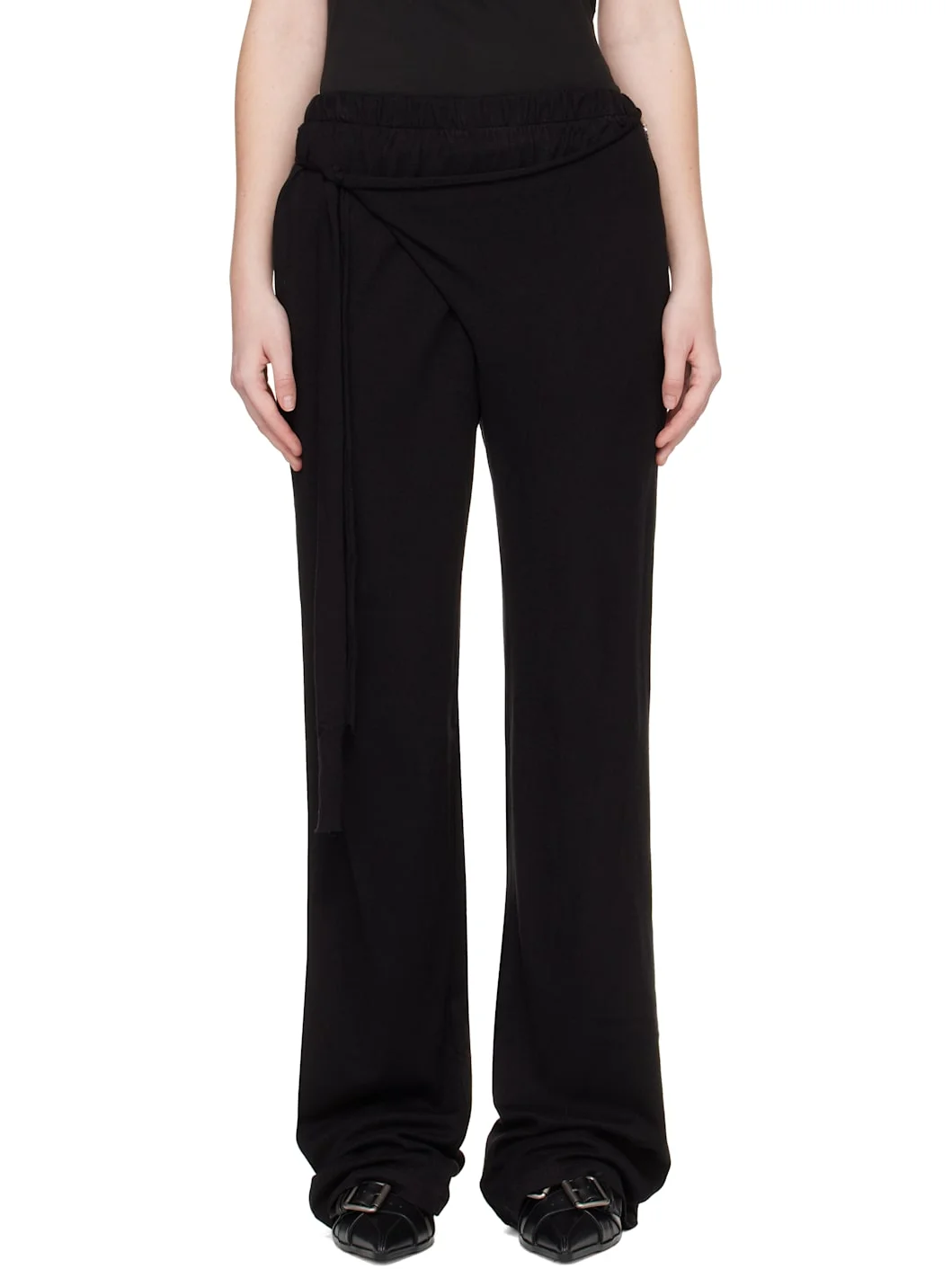 Knit viscose-blend lounge pants. · Elasticized waistband · Two-pocket styling · Self-tie straps and logo plaque at waistband Supplier color: Black 50% viscose, 28% polyester, 22% polyamide. Made in Greece 252016F086000
