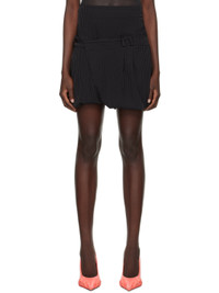 Stretch polyester poplin skirt. Pinstripes throughout. · Wrap and layered construction · Self-tie drawstring , twin darts, and belt loops at waist · Two-pocket styling · Zip-fly · Balloon hem · Zip closure at outseam · Button tab at outseams · Partial viscose satin lining Supplier color: Black pinstripe Body: 95% polyester, 5% elastane. Lining: 100% viscose. Made in Greece 241016F090004