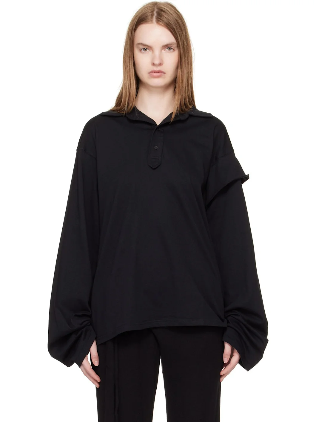 Organic cotton jersey polo. · Spread collar · Three-button placket · Panel with strap and rolled edge at sleeve · Logo and graphic printed at back Supplier color: Jet black 100% organic cotton. Made in Greece 252016F108002