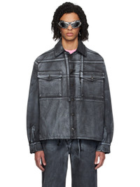 Handcrafted stretch cotton- and recycled polyester-blend denim shirt. Trompe l'œil effect printed throughout. · Spread collar · Button closure · Logo flag at chest · Flap pockets and welt pockets · Shirttail hem · Adjustable single-button barrel cuffs · Rubberized logo patch at back yoke · Logo-engraved gunmetal-tone hardware Supplier color: Black/White paint