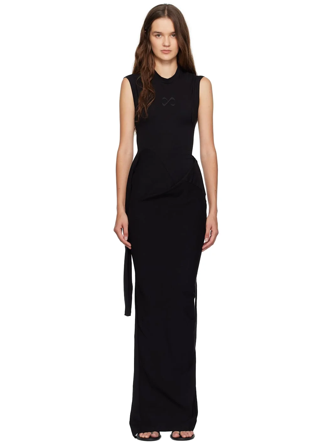 Stretch organic cotton jersey maxi dress. · Draped construction · Mock neck · Dart at front · Self-tie fastening at waist · Slit at side seam Supplier color: Jet black 97% organic cotton, 3% elastane. Made in Greece 252016F055001