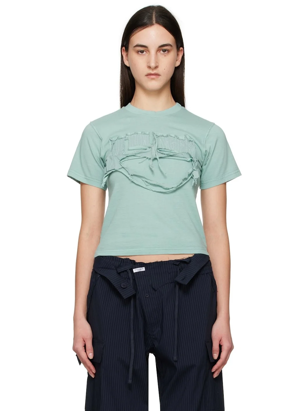 Organic cotton jersey T-shirt. · Rib-knit crewneck · Distressed logo applique at front Supplier color: Blue 100% organic cotton. Made in Greece 251016F110003