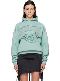 Garment-dyed organic cotton fleece hoodie. · Paneled construction · Eyelets at hood · Distressed logo applique at front · Rib-knit hem and cuffs · Raglan sleeves Supplier color: Blue 100% organic cotton. Made in Greece 251016F097002